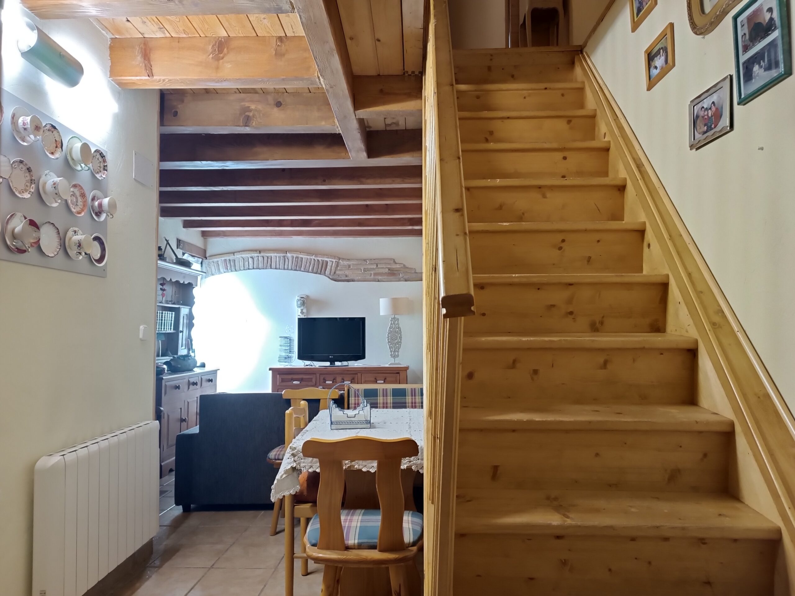 La propiedad se distribuye en cuatro plantas: en la planta baja encontramos un amplio salón con una nueva chimenea perfecta para los días fríos, así como una acogedora cocina americana y un baño funcional. En la segunda planta hay tres dormitorios ideales para toda la familia o invitados. La tercera planta ofrece un espacio diáfano versátil que puede adaptarse a diferentes necesidades, ya sea como sala de juegos o estudio privado. Finalmente, desde lo alto podrás disfrutar de unas vistas espectaculares desde una amplia terraza reforzada con tela asfáltica; este solárium es perfecto para relajarte bajo el sol durante las horas doradas del día.
